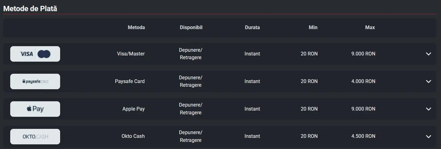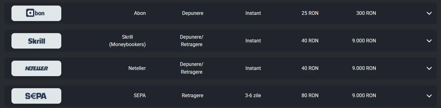 La Winmasters Casino, tranzacțiile sunt simple și sigure. Poți depune și retrage rapid fonduri folosind carduri bancare, Skrill, Neteller, Paysafecard, Apple Pay sau transfer bancar SEPA, toate metodele fiind gândite pentru ați oferi confort și siguranța.